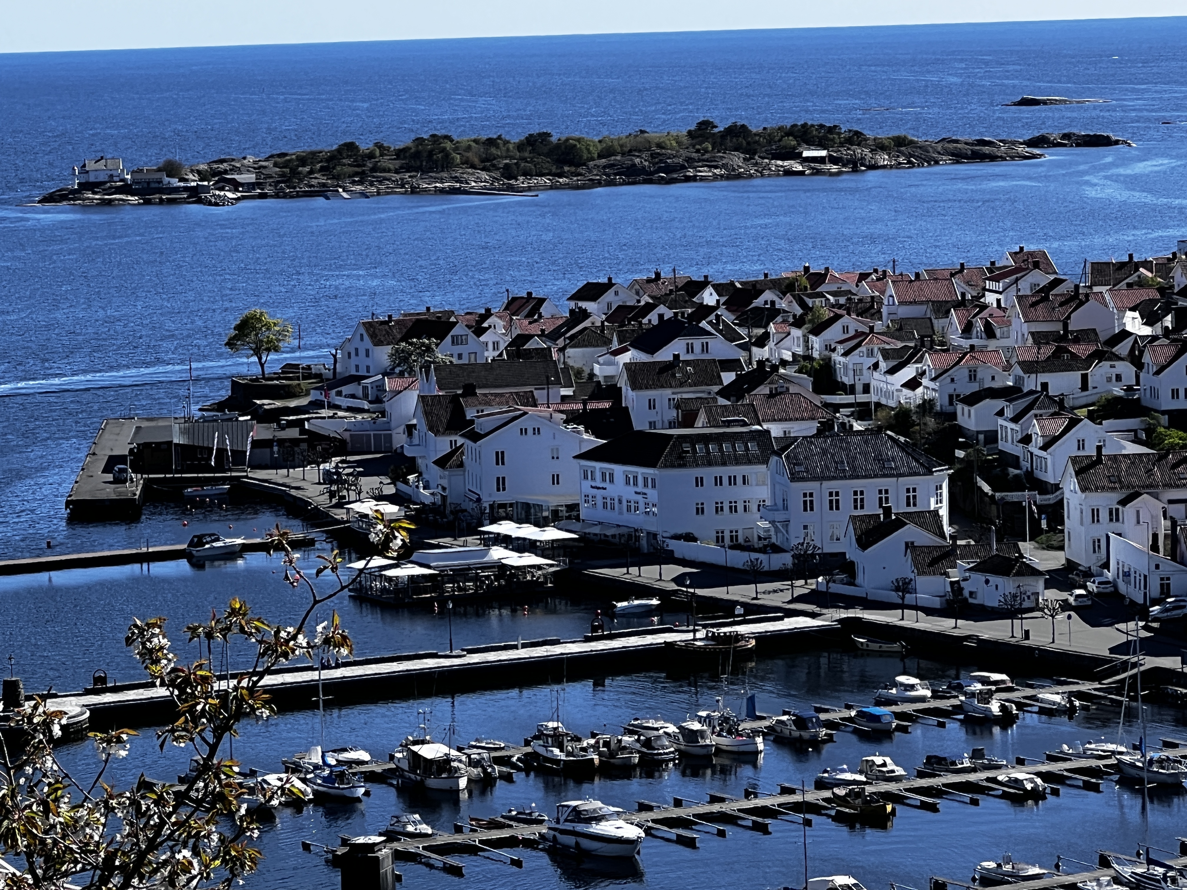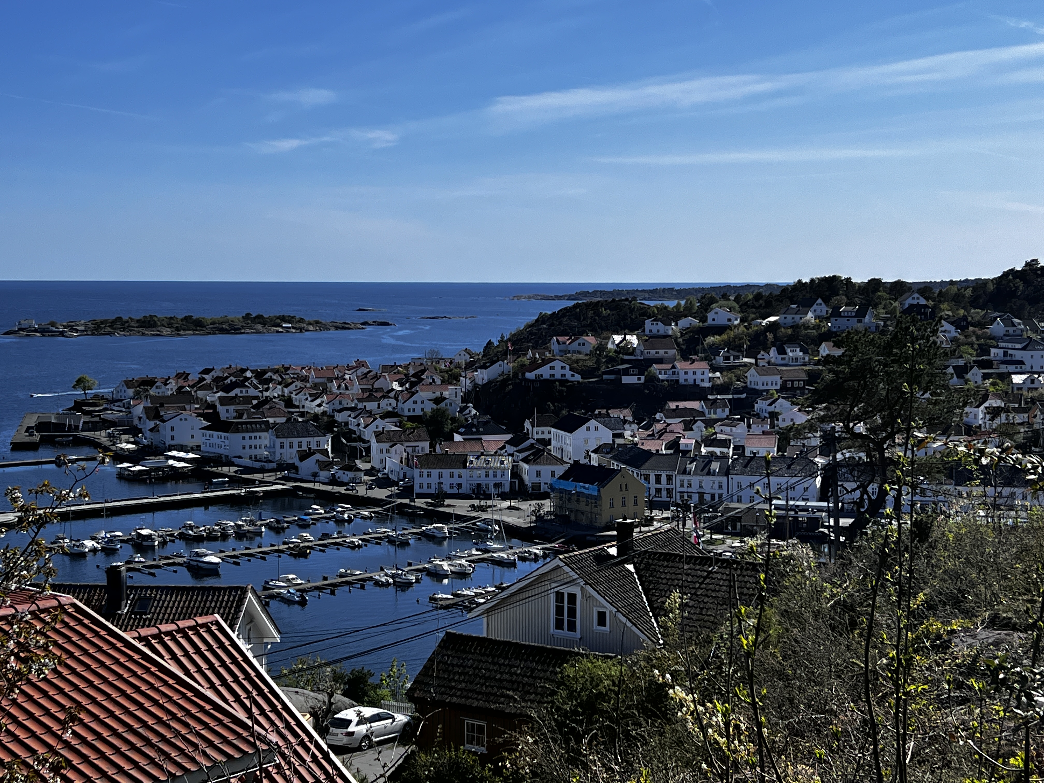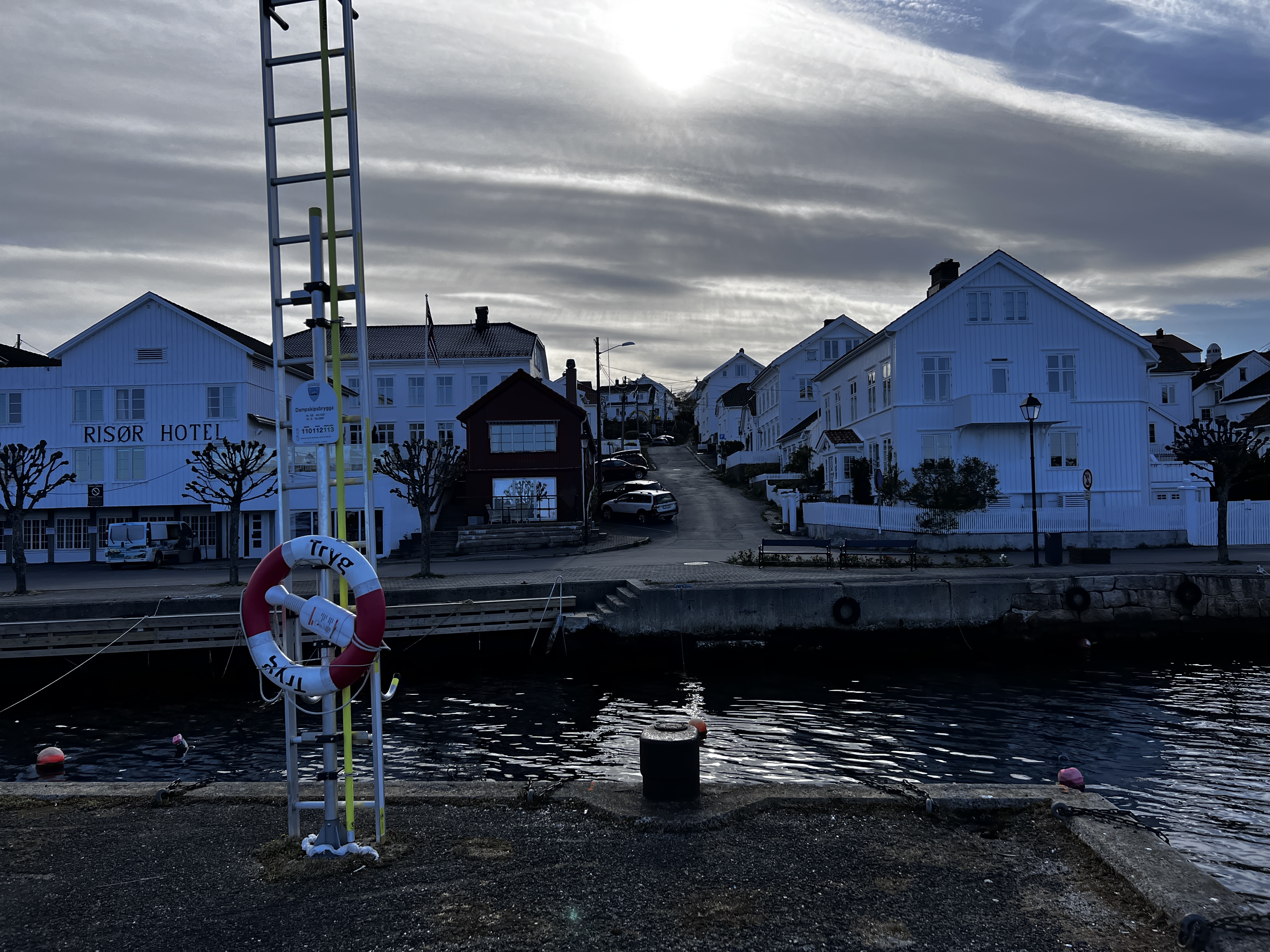 Nuestro primer destino era Risor, un pequeño pueblo en la costa. La carretera hasta allí nos pareció preciosa, llena de lagos y entrantes de mar, pequeños fiordos. Pernoctamos en un parking donde se encuentra la Fortaleza de Urheia.