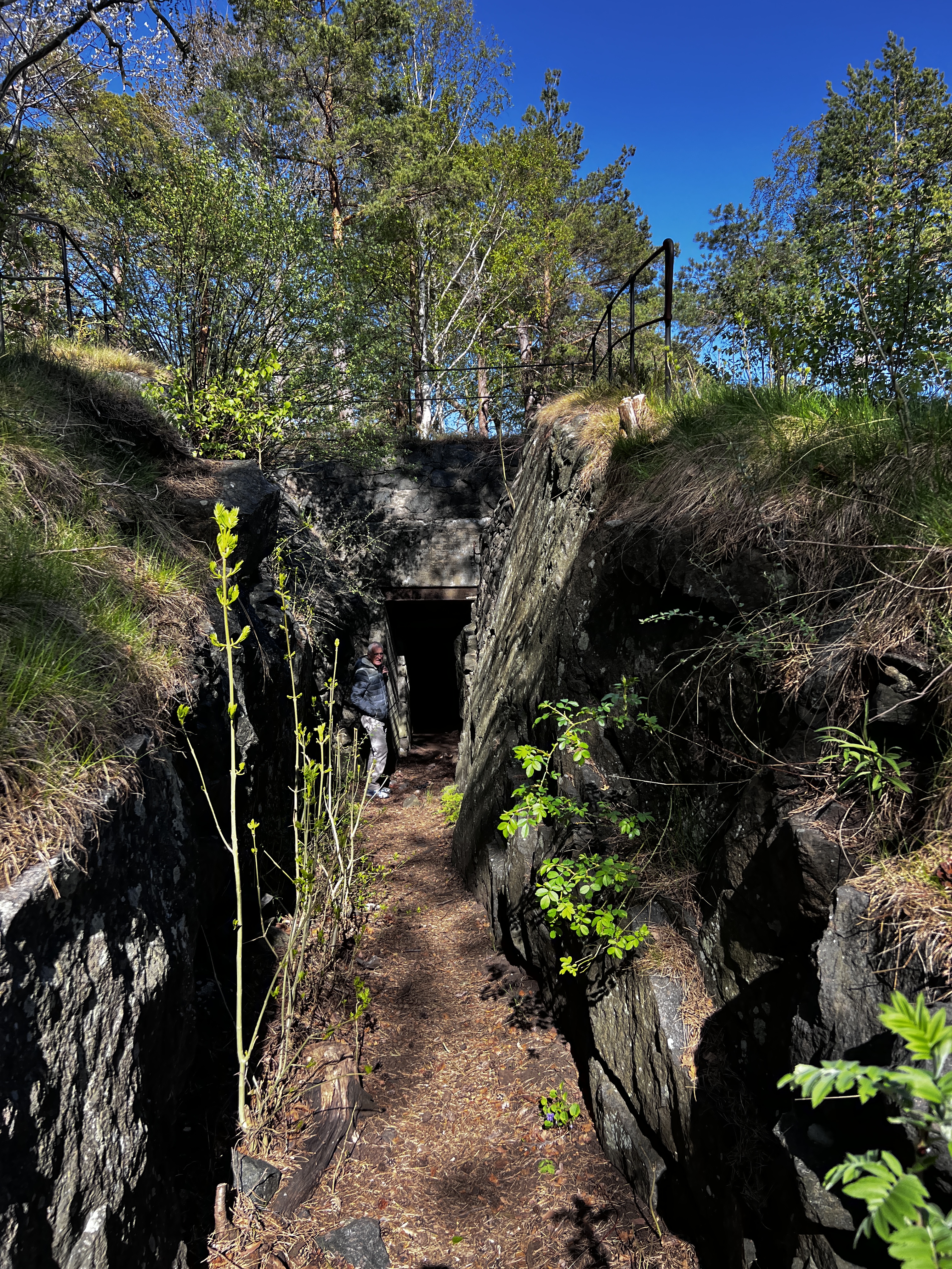 Os comparto un poco de la historia de esta fortaleza. Stian Herlofsen y su mujer Clementine Carstensen construyeron una casa con hermosos jardines y senderos en 1870. Las fuerzas alemanas, en 1941, ocuparon el lugar y construyeron bunkers, trincheras y emplazamientos de artilleria. En 1945 La armada noruega tomó la defensa en Urheia.
