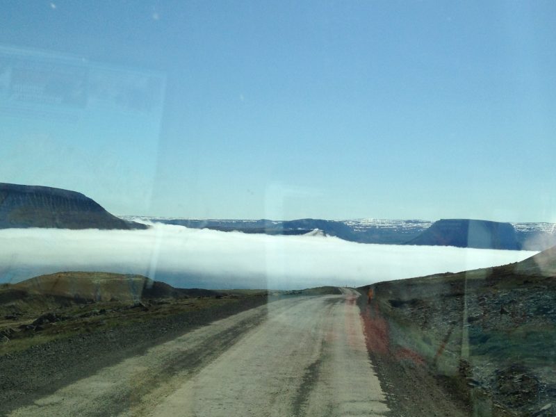 Bueno y de ahí decidimos subir y atravesar los fiordos en vez de volver por el mismo camino que habíamos hecho hasta Isafjördur. Era todo una aventura, sobretodo porque íbamos con la furgoneta y aunque nos habían animado la gente islandesa de Isafjördur que no había problema, habían pasos de montaña que nos hacían dudar. Esta carretera solo la abren en verano desde el 1 de junio. Era el 5 de junio. Así que tuvimos suerte de encontrarla abierta. Había mucha nieve. Íbamos por todo lo alto de las montañas y la carretera era de gravilla y sin nieve. Realmente emocionante!