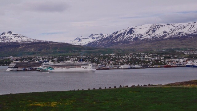 De aquí nos dirijímos a Akureyri , la segunda ciudad mas importante de Islandia.  Nos sorprendió ver trasantlánticos , tres, exactamente en el puerto en un entorno tan bonito.