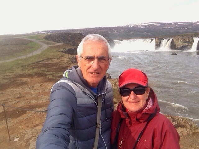 Fuímos casi los primeros en llegar a la cascada de  Godafoss. Es más pequeña , de 12 metros de altura y viene del rio Skjálfandafljót (180 km) , el 4° más largo del pais. Cuenta la historia que en el año 1000 el cápitan del distrito de Ljósavatn tuvo la tarea de decidir si los islandeses debían adoptar la fe cristiana. Cuando la decisión fue definitíva fue a su casa y tiró sus estatuas de dioses paganos dentro de la cascada. Y su nombre derivó en Godafoss (cascada de los dioses).