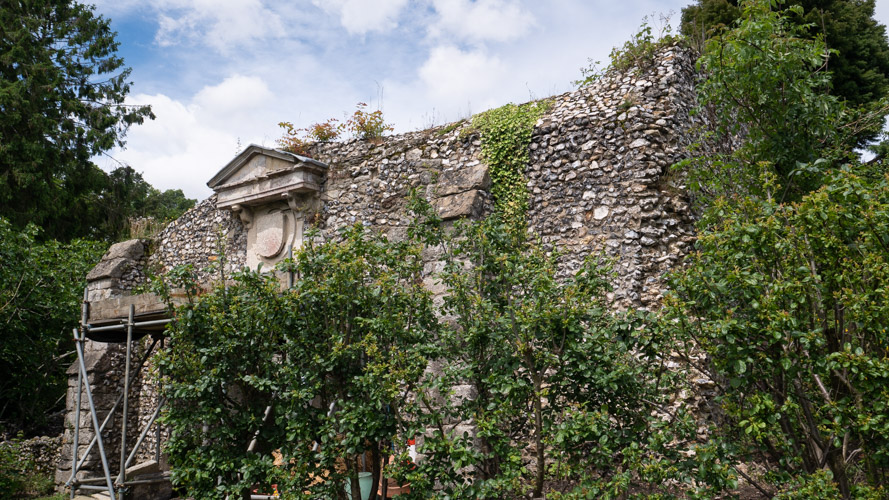 Curiosa parte trasera de la iglesia donde están reconstruyendo la pequeña antigua entrada a la muralla.