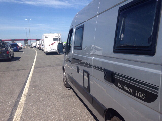 Hacia las 12 del mediodía nos dirigimos al puerto donde teníamos que estar una hora y media antes de la salida del Ferry MS Norröna, a las 15:00. En la cola de entrada ya había varios vehículos de todo tipo.